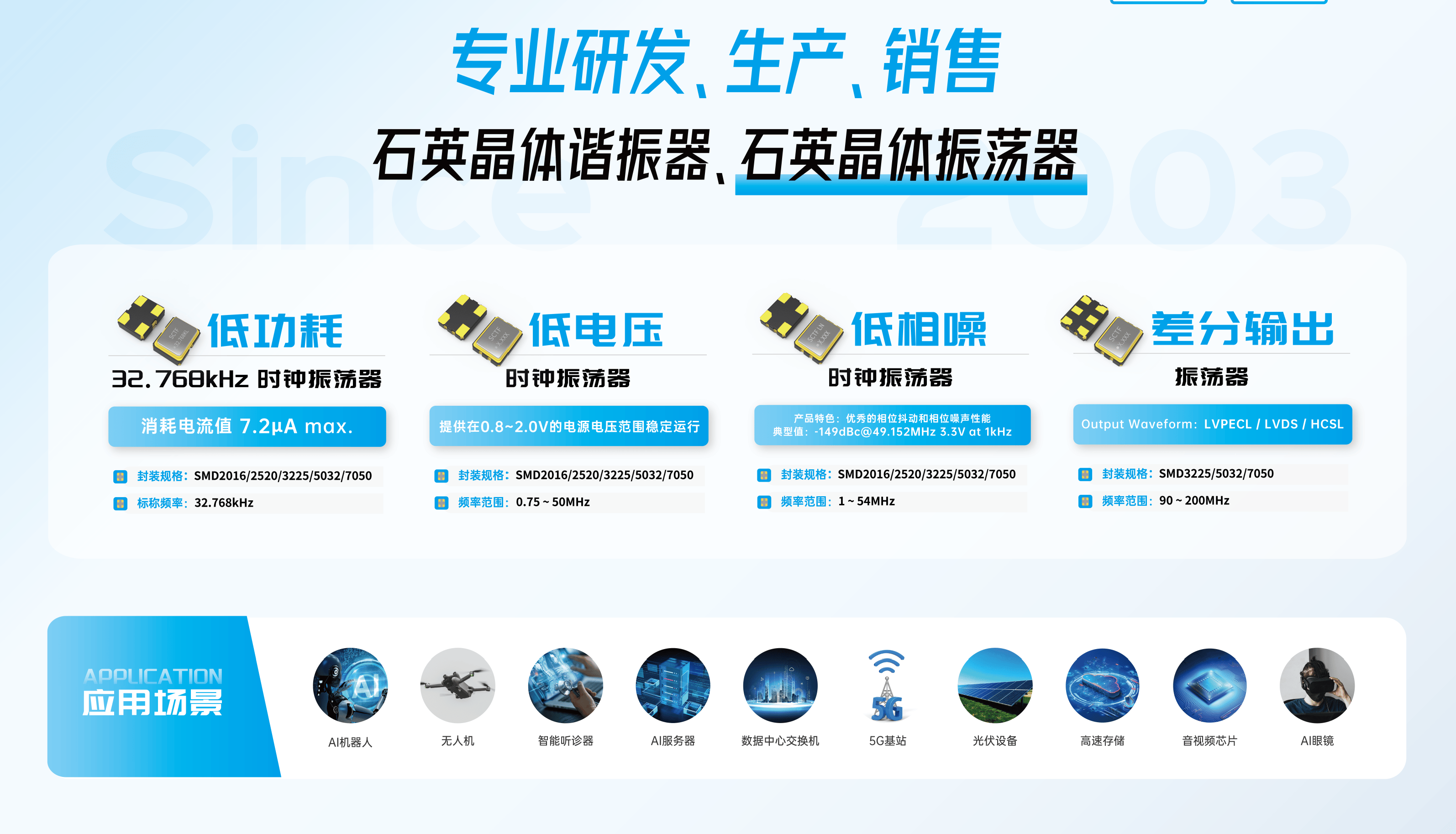 本次展會(huì),星通時(shí)頻集中呈現(xiàn)了包括32.768kHz晶體、MHz晶體、SMD振蕩器(SPXO)、溫補(bǔ)晶振(TCXO)、壓控晶振(VCXO)、差分輸出振蕩器(DXO)、可編程晶振及車規(guī)級(jí)晶振等一系列產(chǎn)品與解決方案,全面覆蓋通信、工控、醫(yī)療、AI、新能源等多個(gè)熱門行業(yè)的需求。